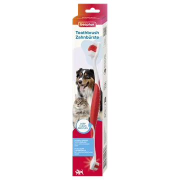 Tannbørsten har et mykt ergonomisk grep og varierende bustlengder for dyp rengjøring. Den har børste i hver ende med ulik størrelse som gjør den egnet for alle størrelser av katter og hunder.